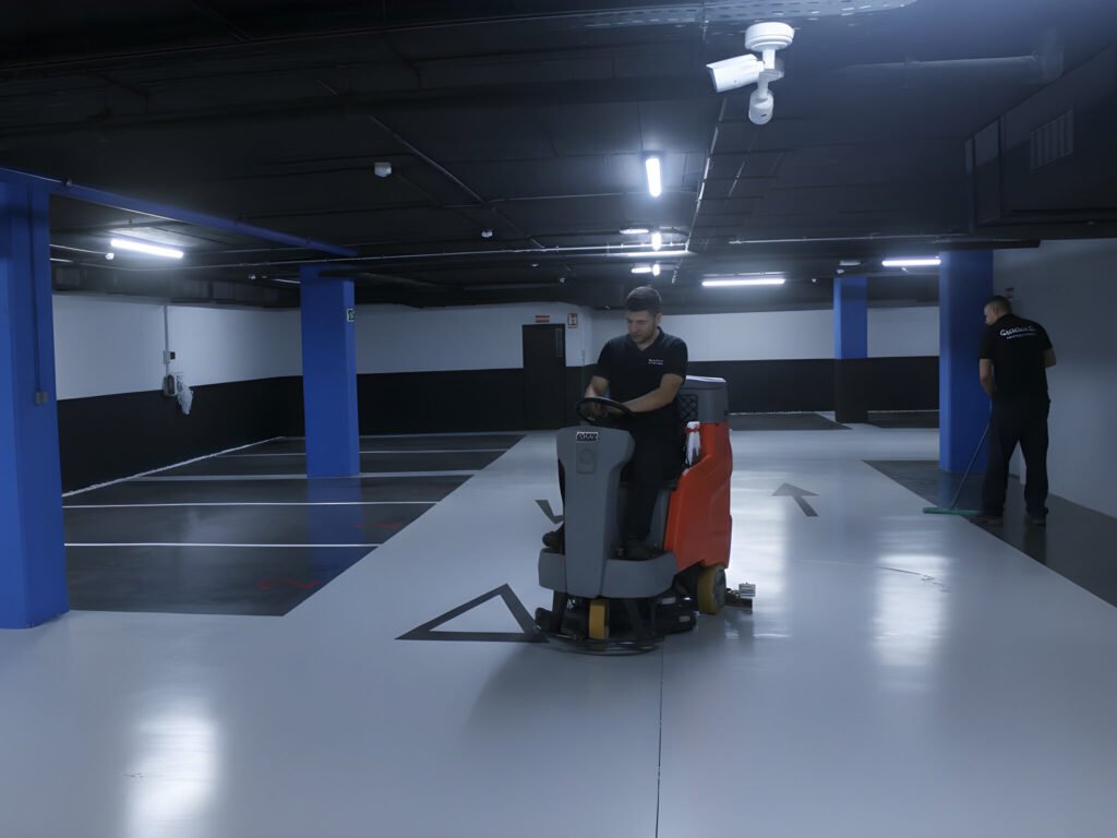 Realizamos limpieza integral de parkings utilizando maquinaria profesional y productos específicos para suelos industriales: